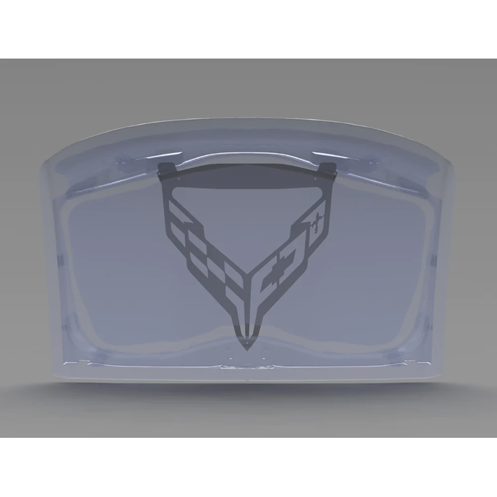 Deluxe sparkle grey mounted storage rack for 2005-Present C6, C7, C8 Corvette roofs, features C8 crossed flags logo. This rack protects your roof by allowing the roof to hang from its front latches, on the wall, out of harms way. Rack is constructed of powder coated, laser cut steel. Instructions and mounting hardware included.