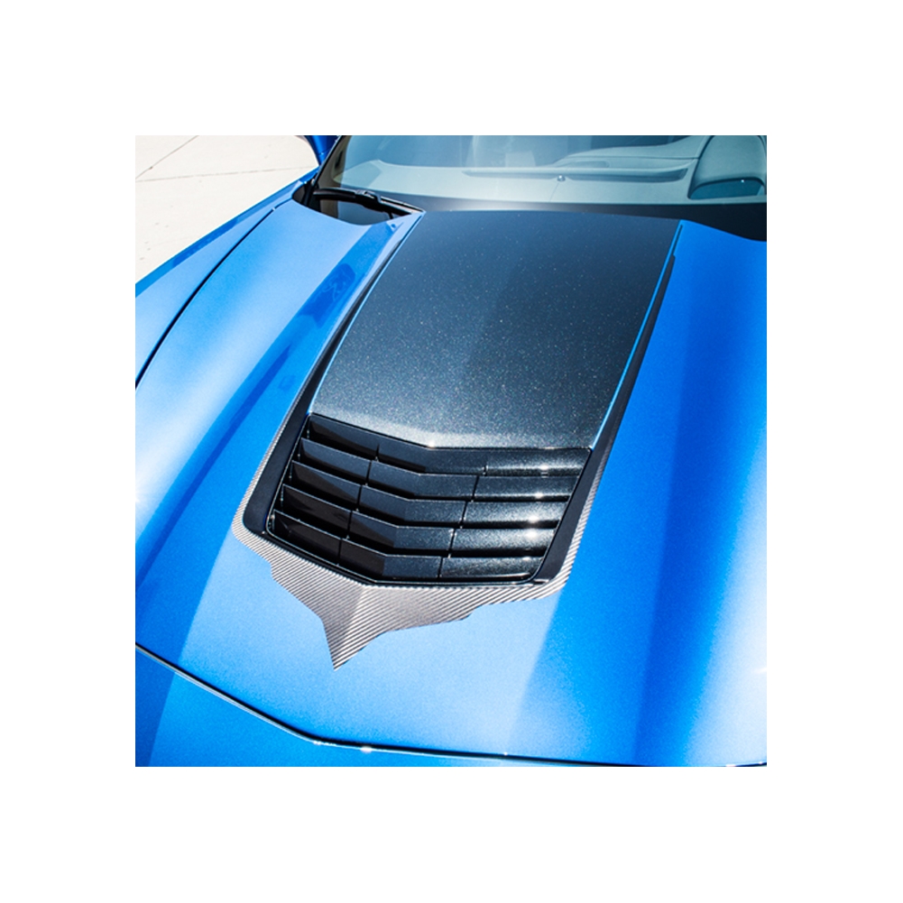 Make your Corvette Stingray uniquely your own when you add this custom Hood Vent Graphic. This is the outer trim only, not the vent or center section of hood. Made from highly durable vinyl and featuring a faux carbon fiber and brushed metal look. This unique design is guaranteed to separate you from the rest of the Vettes where ever you go.