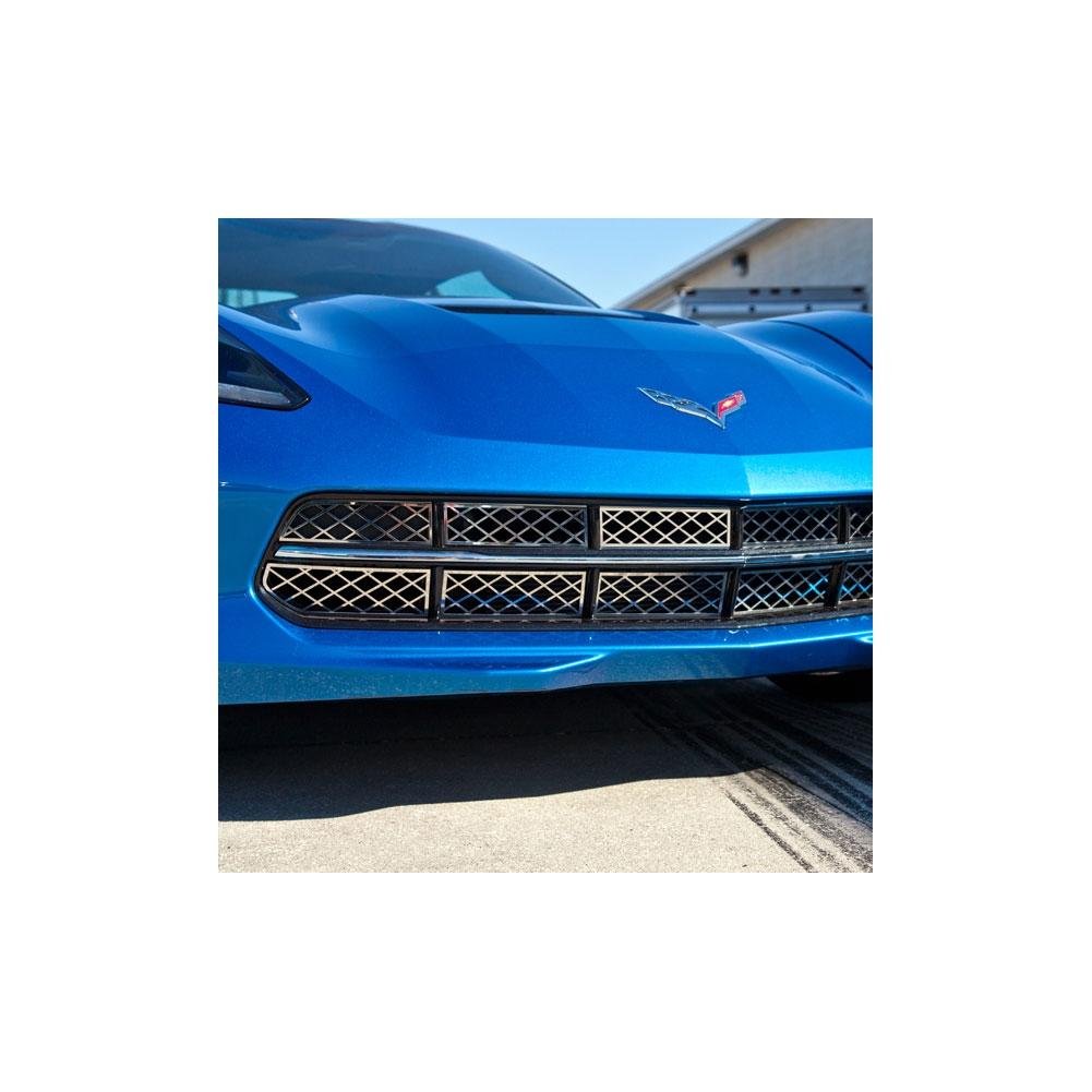 Dress up your C7 Corvette Stingray with our Polished - C7 Corvette Stingray Front Grille Stainless Steel Overlay. These C7 Corvette Front Grille Stainless Steel Overlays are designed to fit all 2014+ Corvettes over the factory front grille and add a clean stylish look to your Corvette exterior. Fits all C7 Corvette Coupe.