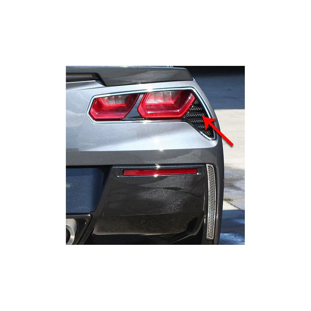 Dress up your C7 Corvette Stingray with our NEW Matrix Series - Aluminum Mesh/Stainless Steel C7 Corvette Stingray Matrix Taillight Grilles. These grilles are designed to fit all 2014+ Corvettes inside of the rear bumper vents and add a clean stylish look to your Corvette exterior.