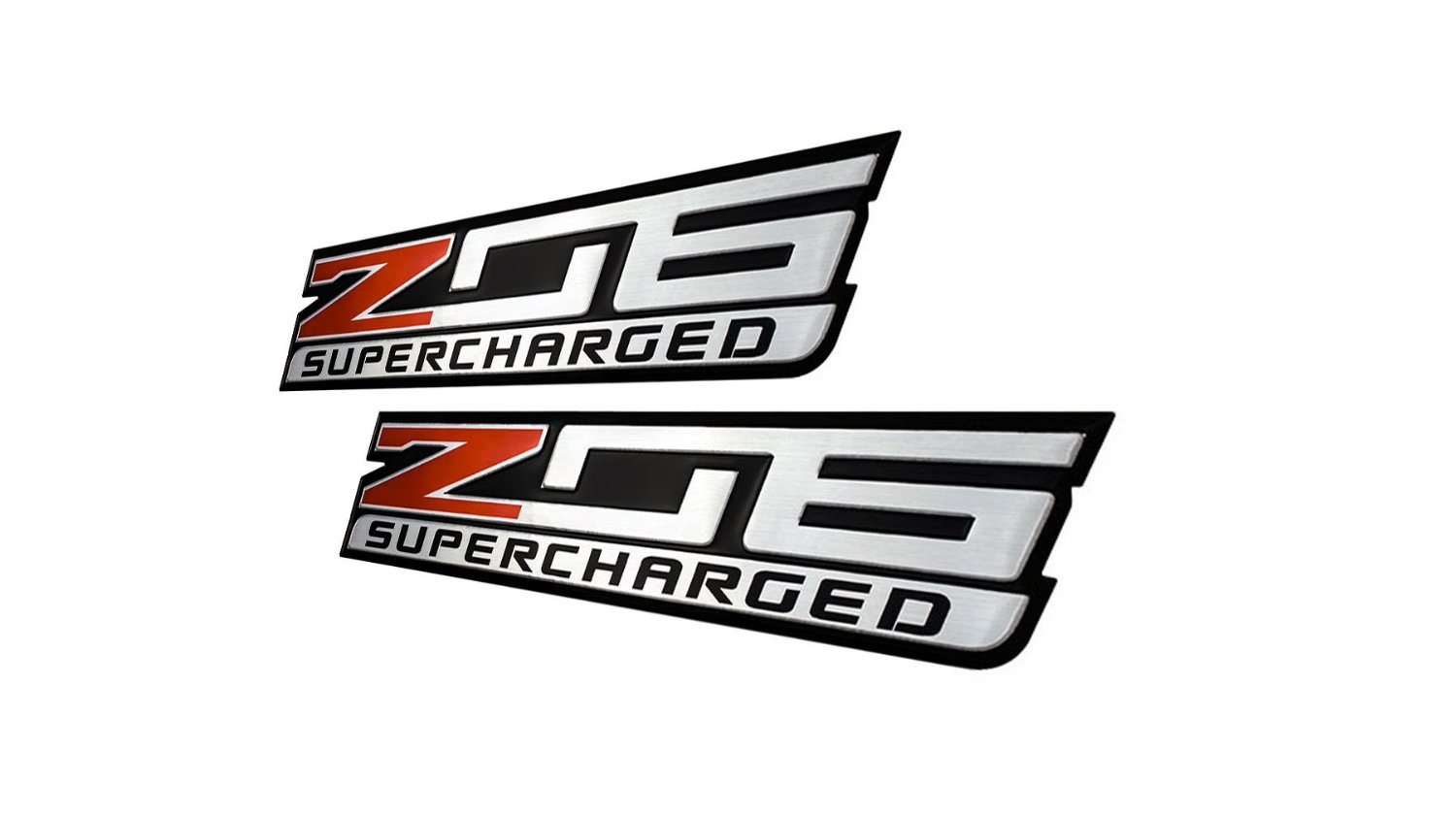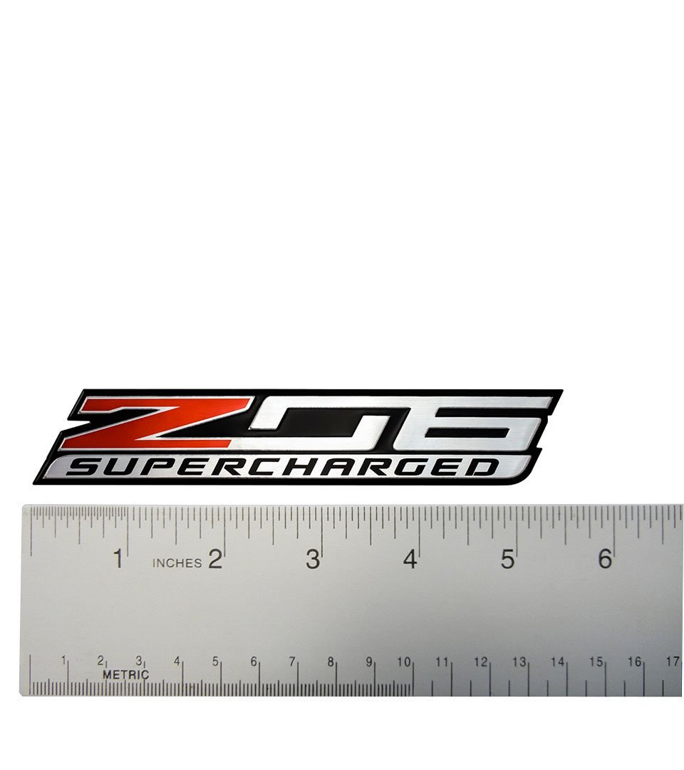 Corvette Z06 SUPERCHARGED Highly Polished Aluminum EMBLEM for Chevy Chevrolet CORVETTE C5, C6, C7 in Red, Black, Silver (Pair, set of 2)