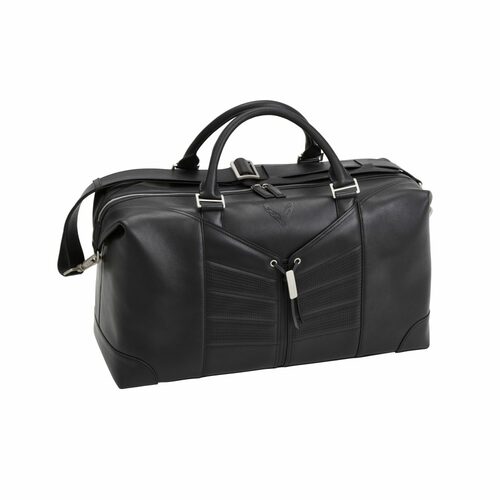 Show off your C8 Corvette Stingray passion to the world with this Premium Leather Travel Bag from Chevrolet. This Genuine Chevrolet Corvette Accessories travel bag features the embossed Corvette C8 Crossed Flags Logo and the interior liner features a Crossed Flags logo pattern. This factory option travel bag is specifically designed to fit in either the front or rear cargo areas and incorporate perforated leather and detailed stitching that matches the high level of craftsmanship of your Corvette interior. Arrive in style with this Genuine Chevrolet Accessories Premium Leather Travel Bag.