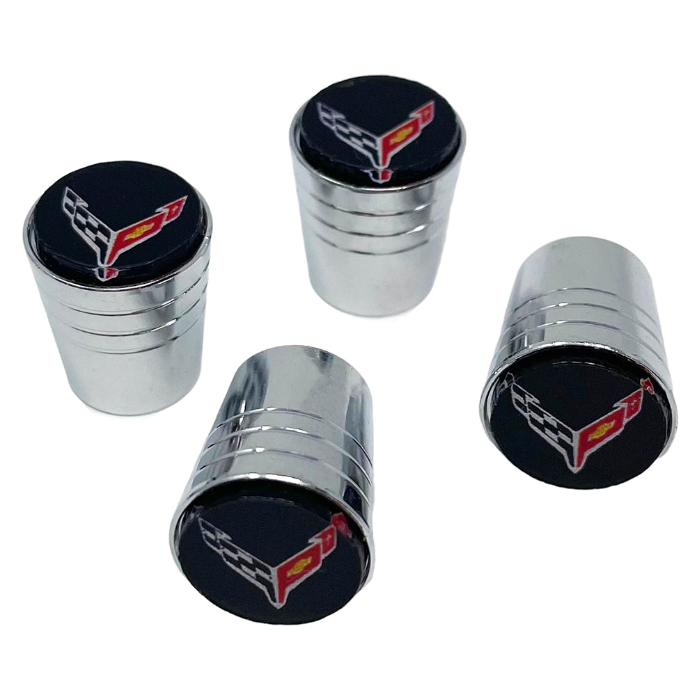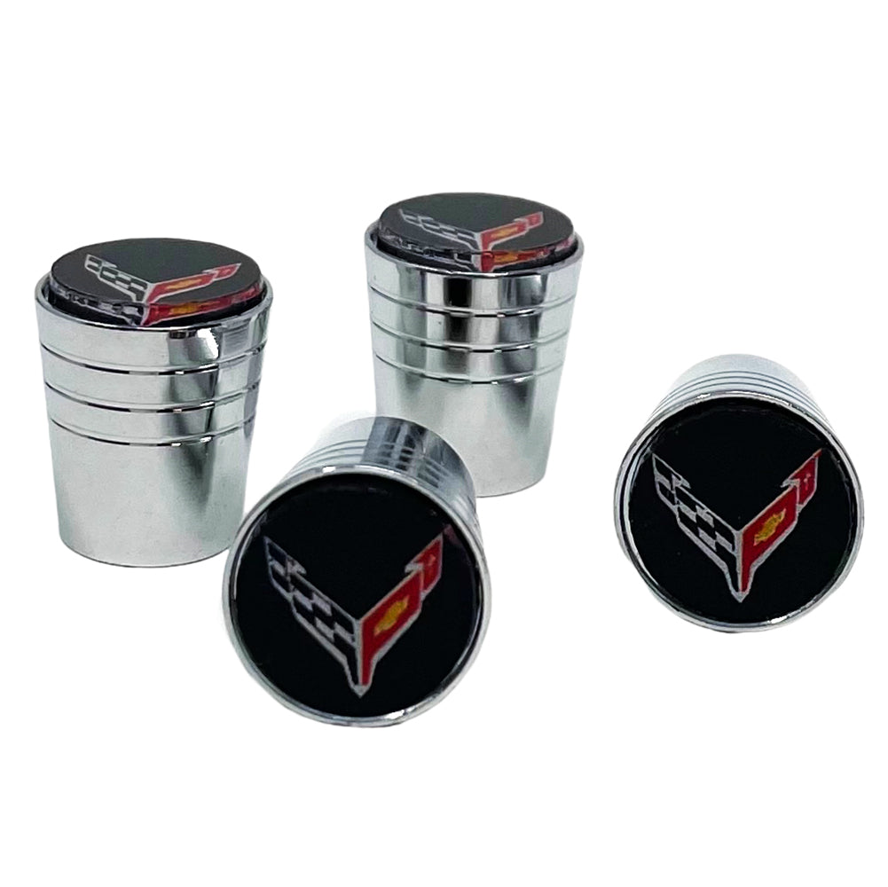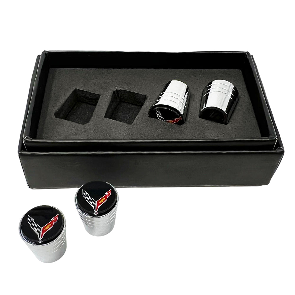 C8 Corvette Crossed Flags Logo Aluminum Valve Stem Caps built to last and look good for years to come. If you've ever bought a set of those cheap Chinese caps only to watch them deteriorate quickly, you'll appreciate the German manufacturing quality of these aluminum domed logo caps. These are officially licensed by GM with the C8 Crossed Flags logo under a beautiful, clear polyurethane dome. High quality aluminum valve stem caps that are triple plated with chrome. They have been salt tested for 24 hours, and have been tested against tire pressure monitoring systems (TPMS). Also, they will not affect the balancing of the tire. Sold as a boxed set of 4.