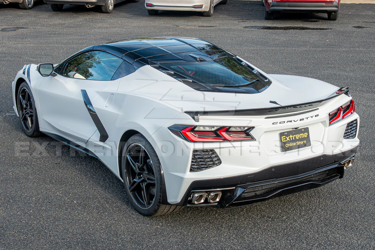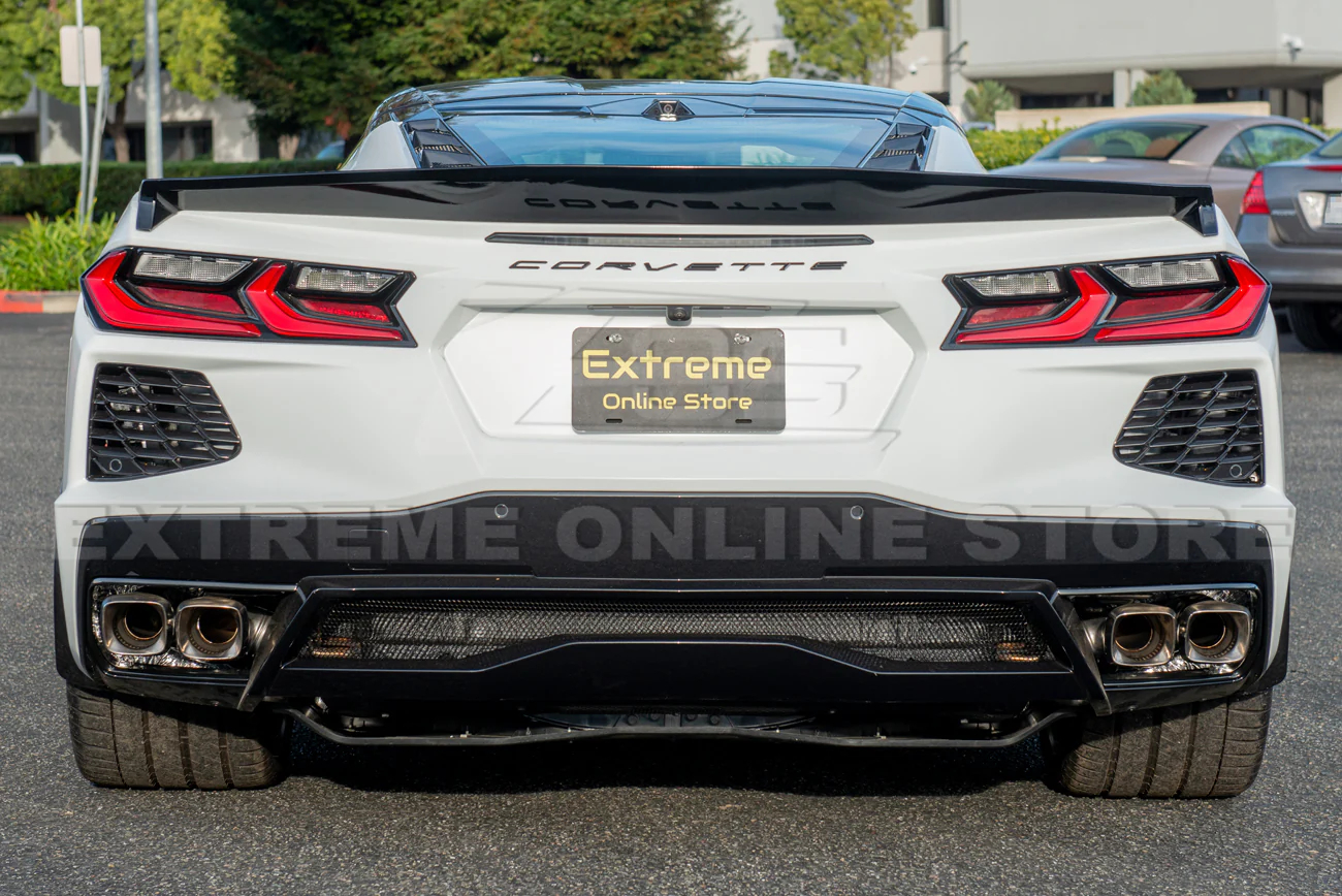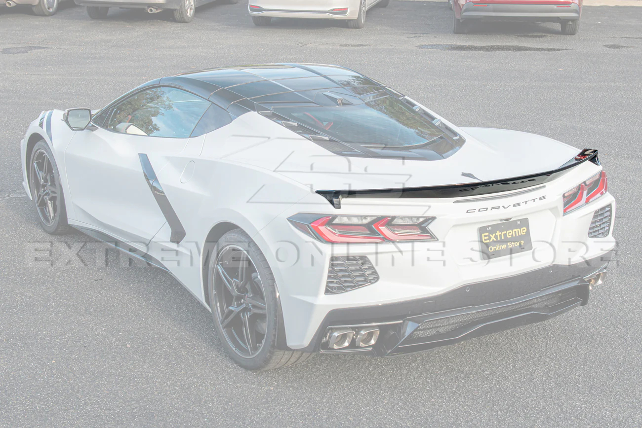 Corvette C8 Z51 Low Profile Rear Trunk Lid Wing Spoiler COMPARABILITY: 2020-Up Chevrolet Corvette C8 Stingray / Z51 SURFACE FINISH: Glossy Black MATERIAL: ABS Plastic PACKAGE INCLUDED: Corvette C8 Z51 Low Profile Rear Trunk Lid Wing Spoiler All available items are in stock and ready to ship after inspection FEATURES: Effectively maximizes the aerodynamic attributes of your Corvette C8 Compatible with Chevrolet Corvette C8 all model The Corvette C8 Z51 Low Profile Rear Trunk Lid Wing Spoiler is a performance accessory that can be installed on the rear trunk lid of the 2020-Up Chevrolet Corvette C8 with the Z51 performance package. The spoiler is designed to improve the car's aerodynamics by generating downforce and reducing drag. The spoiler is made of lightweight and durable materials, such as carbon fiber or fiberglass. It features a low profile design that blends with the car's sleek and sporty appearance. Before beginning the installation, ensure that the vehicle is clean and dry. Also, ensure that all necessary tools and hardware are readily available. Locate the mounting points on the part that will attach. Test fit to ensure proper alignment and fitment. Using the provided hardware, attach the splitter to the mounting points on the part.