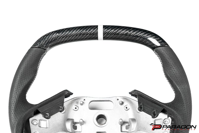- Carbon Fiber with Leather option - 12 o'clock Light Gray stripe - OEM Z06 style with premium look - Light Gray Stitching - Retains all OEM functions except heat.