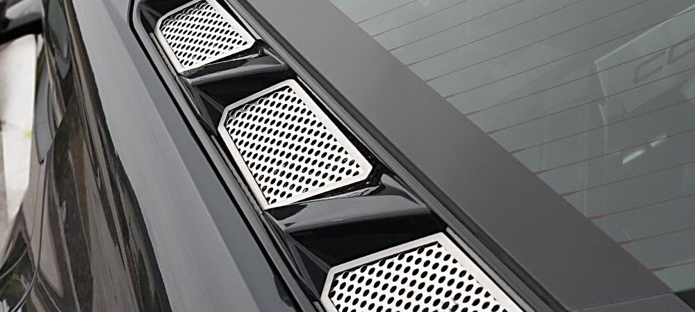 Take a look at these easy-to-install Perforated Stainless Steel 6-piece Rear Hood Vent Inserts. You'll ? these C8 Corvette Accessories and the outstanding quality and workmanship worthy of your C8. What a great way to create a custom style and grab the spotlight. Our Corvette accessories are laser-cut for a precision fit and handcrafted in the USA.