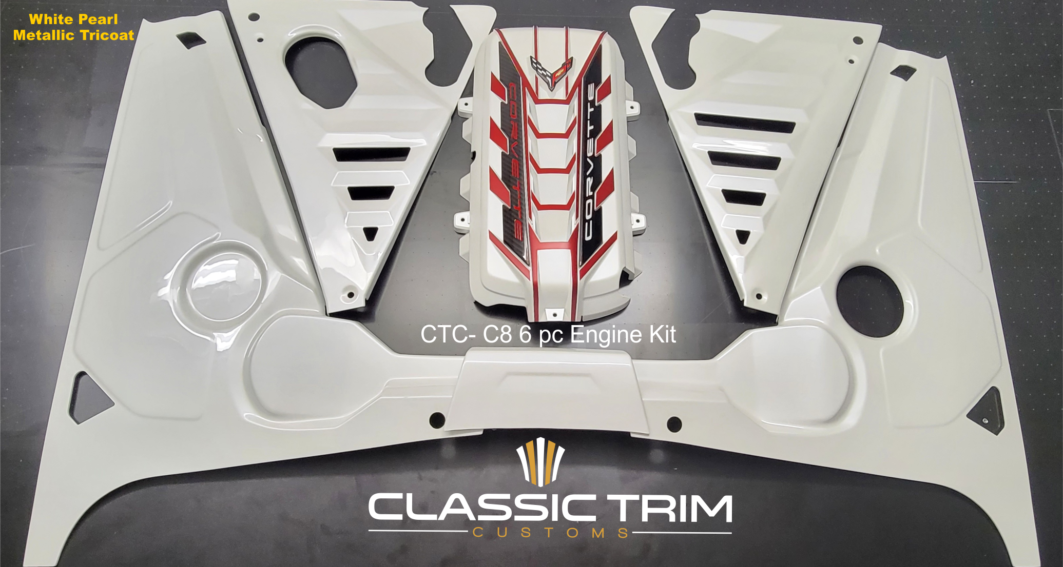 Introducing the Ultimate C8 Corvette Accessory, our C8 Engine Dress Up Package Unleash the Power of Style! Revitalize the heart of your Corvette with our exquisite 6-piece Engine Dress Up Package, meticulously crafted to elevate your vehicle™s appearance to extraordinary levels. Designed to fit C8 Corvette models, this exclusive package is a fusion of three exceptional products, carefully curated to complement each other seamlessly. 1. C8 Corvette Engine Panels (2pc): Enhance the aesthetics of your Corvette™s engine bay with our precision-engineered C8 Engine Panels. Crafted from high-quality materials, these panels add a touch of sophistication and sleekness to your engine, turning heads at every turn. Engineered to perfection, they provide a perfect fit, ensuring easy installation. 2. C8 Corvette Engine Trim Panels (3pc): Unleash the power of customization with our C8 Corvette Engine Trim Panels. Embrace the freedom to choose from a wide range of options, tailor-made to match your vision and personality. Each trim panel boasts a flawless finish, highlighting the engine™s contours with precision. Elevate your Corvette™s presence and make a bold statement on the road. 3. C8 Engine Cover (1pc) Hand-Painted OEM Masterpiece: Introducing our stunning C8 Engine Cover a true marvel of design and engineering. These are original OEM engine covers that we customize to perfection. All details are meticulously hand-painted, ensuring a level of craftsmanship that sets our covers apart. Unlike vinyl lines, the intricate designs on these covers are delicately painted, adding a touch of artistry to your Corvette™s engine bay. With this all-inclusive Engine Dress Up Package, your Corvette will exude unparalleled elegance and refinement. Be the envy of fellow Corvette enthusiasts as your car cruises through the streets, leaving a trail of awe-struck admirers in its wake. Each product in this package is designed to ensure durability, guaranteeing a long-lasting investment in style and sophistication. Embrace the art of personalization and make your Corvette truly one-of-a-kind.