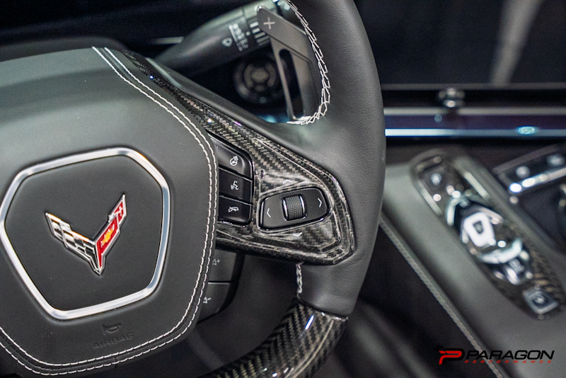 Add a touch of carbon fiber to your steering wheel with this CCS Steering Wheel Black Side Overlay. Installs easily by peeling and sticking it over your existing black trim. Pairs well with other carbon fiber interior accessories. Works with heated steering wheels only.