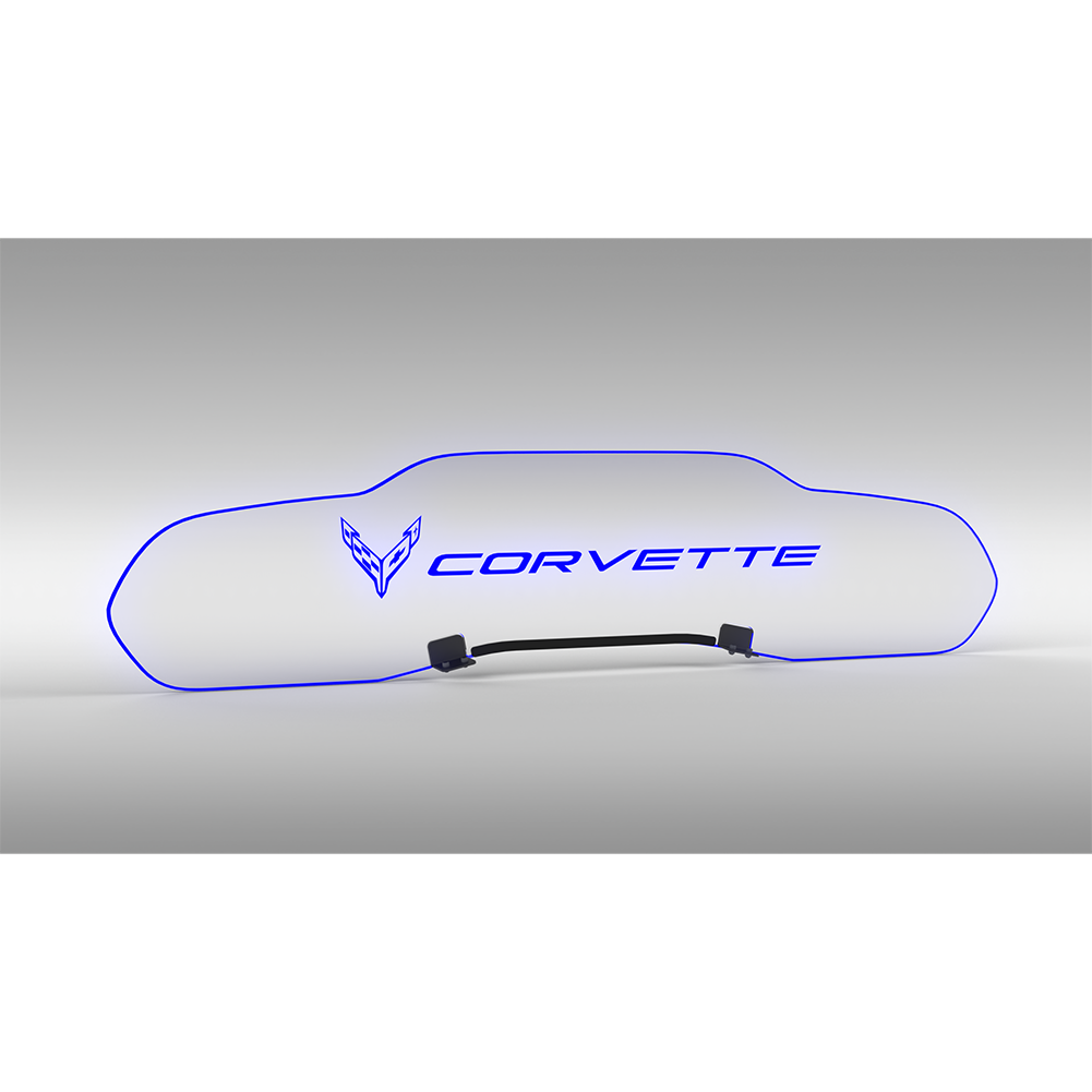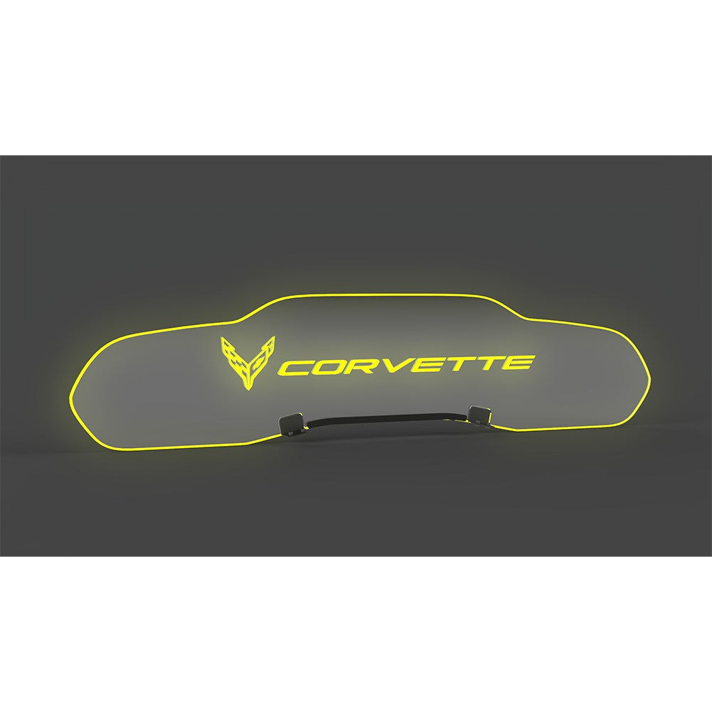 Corvette WindRestrictor Illuminated Glow Plate- Flags Left Of Script Coupe : C8