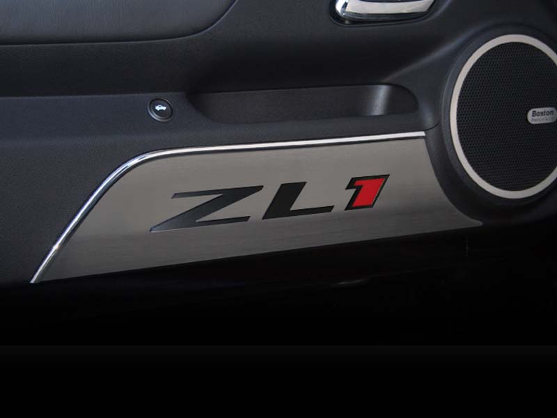 ; Fits all 2012-2015 ZL1 Camaros. Door Panel Kick Plates "ZL1 Style" Satin 2pc