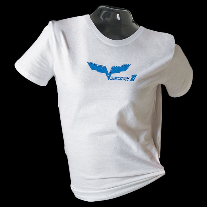 Ultra soft, lightweight tee in 4.8 oz. jersey knit features a glitter- ink ZR1 logo with rhinestone accents and subtle overall cross-flag logo print. Available in White S, M, L, XL.