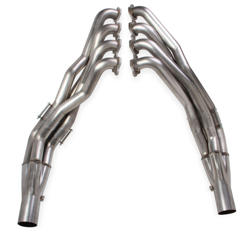 BlackHeart™ 304 SS Long Tube Exhaust Headers (70101326-RHKR) by Hooker®. Primary Tubing Diameter: 2". Collector Outlet Diameter: 3". Header Style: Long Tube. Hooker continues to push the boundaries of performance with the new Blackheart line of performance exhaust headers for popular late model vehicles. All Blackheart headers are constructed of lightweight 18-gauge, 304 stainless steel with high-flow, long transition collectors featuring merge spears for maximum flow and increased exhaust velocity. 0.375” thick water-jet cut flanges provide maximum sealing surface for a leak-free seal and ultimate strength. The primary tubes are designed for optimum flow and maximum ground and engine component clearance providing the perfect combination of performance and fit.