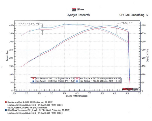 - Max dyno gains of +9.80 HP & +14.46 LB.FT torque w/ dual transverse mufflers