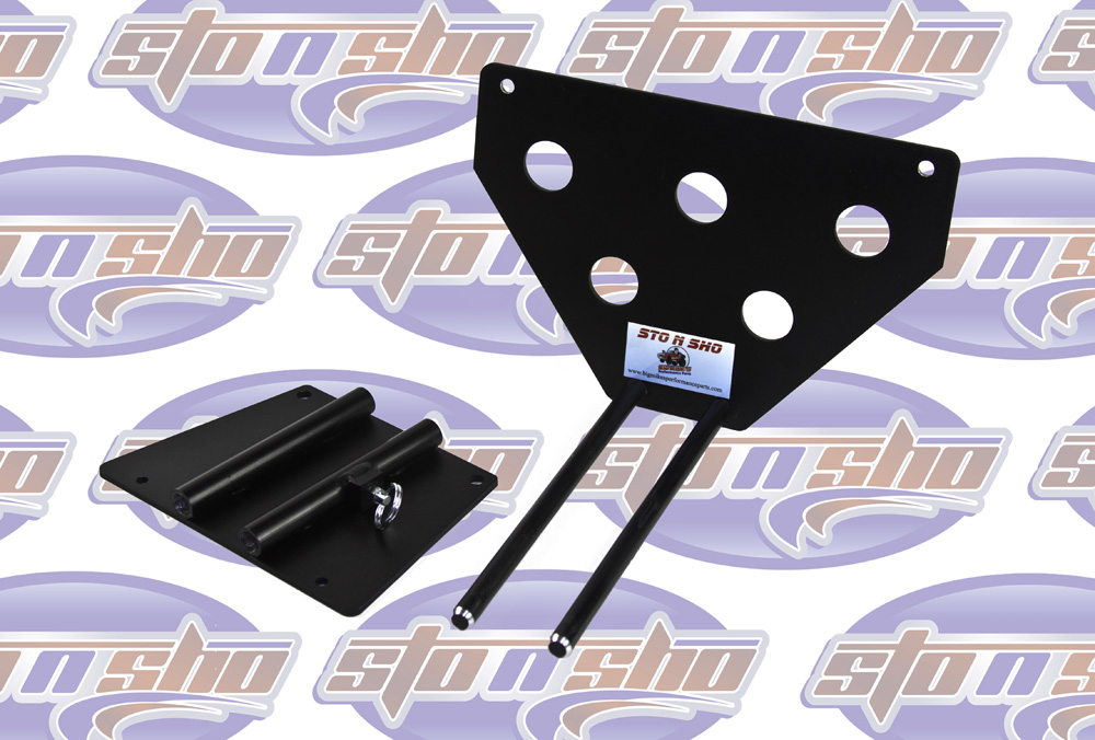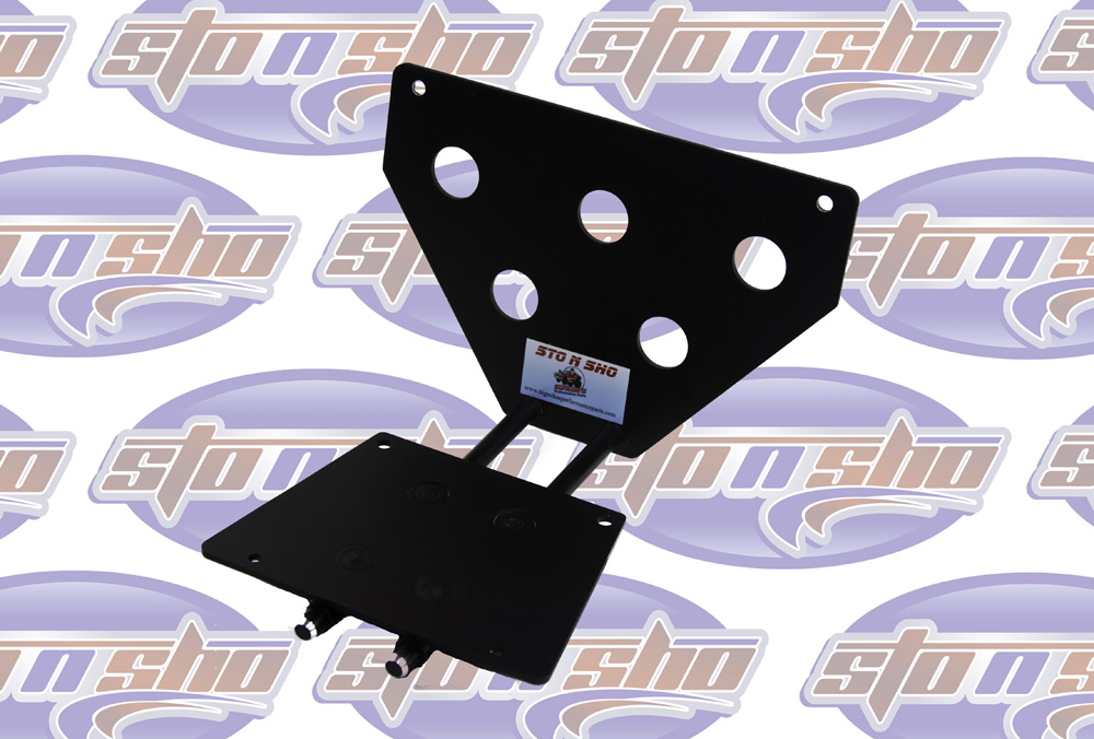 The STO N SHO is manufactured in the USA using quality materials and parts. While the bracket may look simple in appearance, a lot of time and work goes into making each STO N SHO to ensure you receive a quality product. • Constructed of 5052 and 6061 aluminum • Welded and anodized black • Built to last and comes with a limited lifetime warrantyLicense Plate Bracket Made of lightweight aluminum 2-piece system consisting of a front plate and a base plate