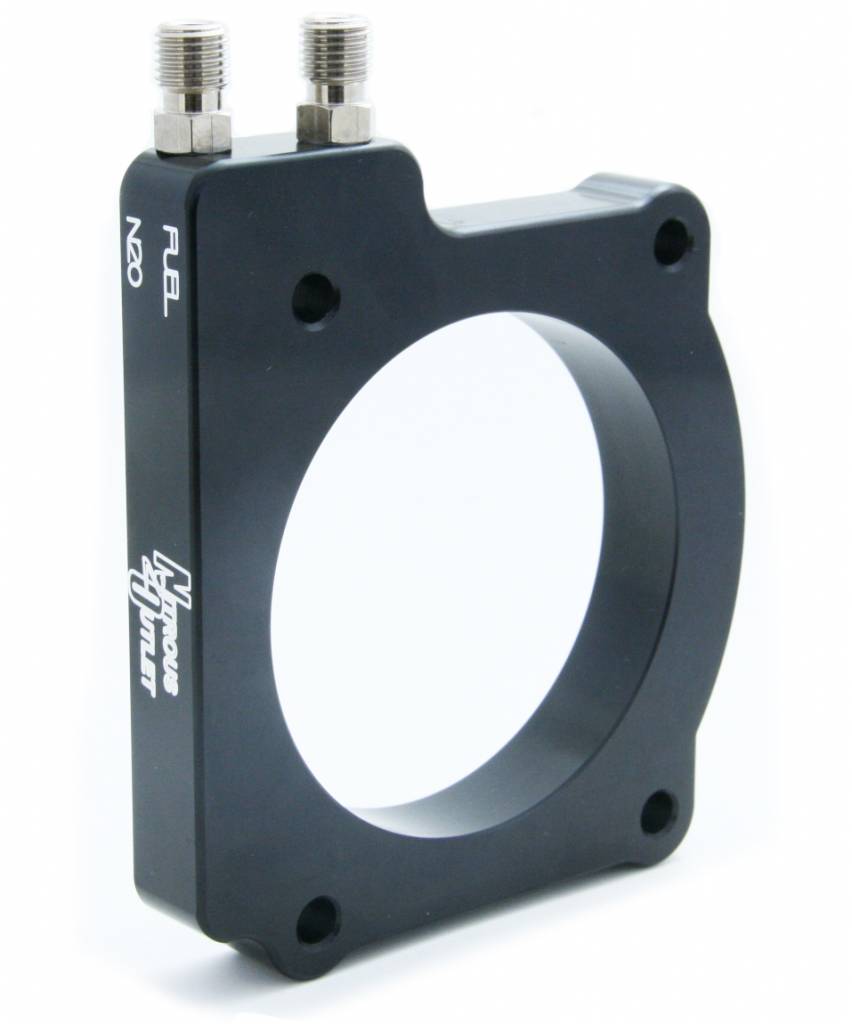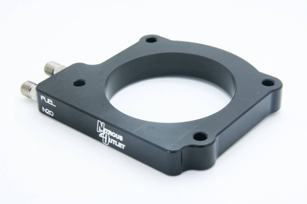 Wet Nitrous Plate. This system includes a billet aluminum plate to fit 2010-2015 V6 Camaro intake and can flow up to 400 HP of nitrous. Each billet plate has a black anodized finish with a CNC engraved logo and fuel/nitrous labels.