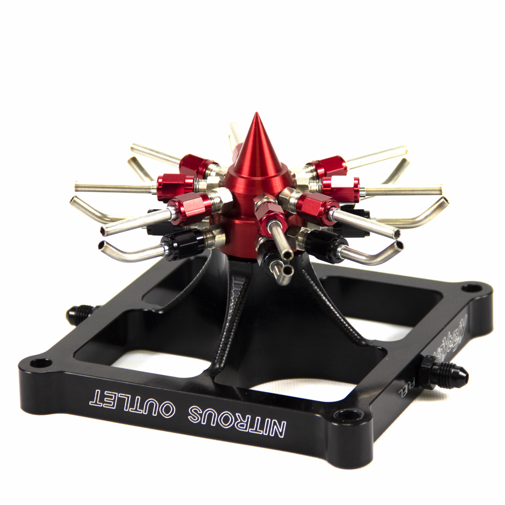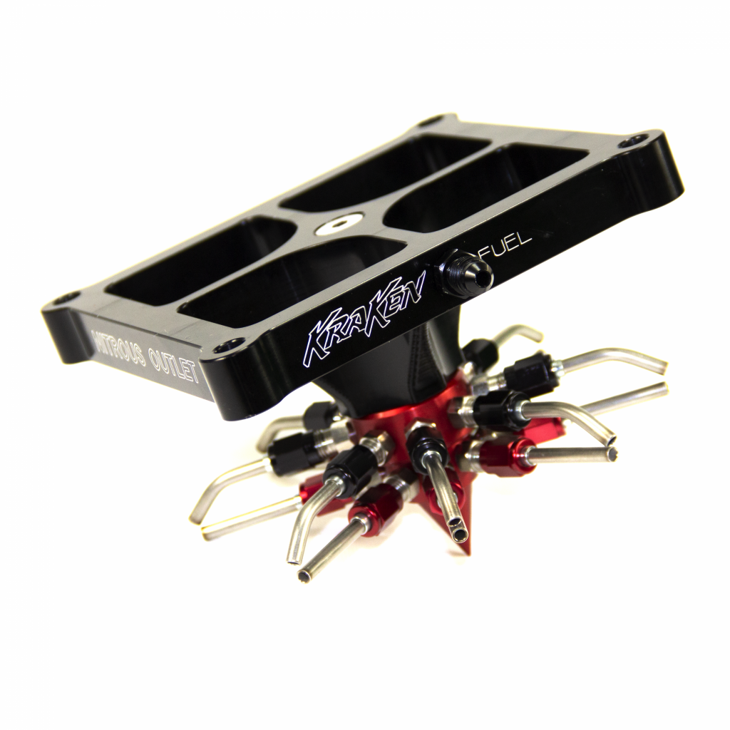 The main drawback to a nitrous plate has so far been the inability to tune for individual cylinders. Enter The Kraken! It is jetted at the cone to allow the ultimate tuneability and designed to work with 4500 flange intake manifolds with a plenum depth greater than 4".