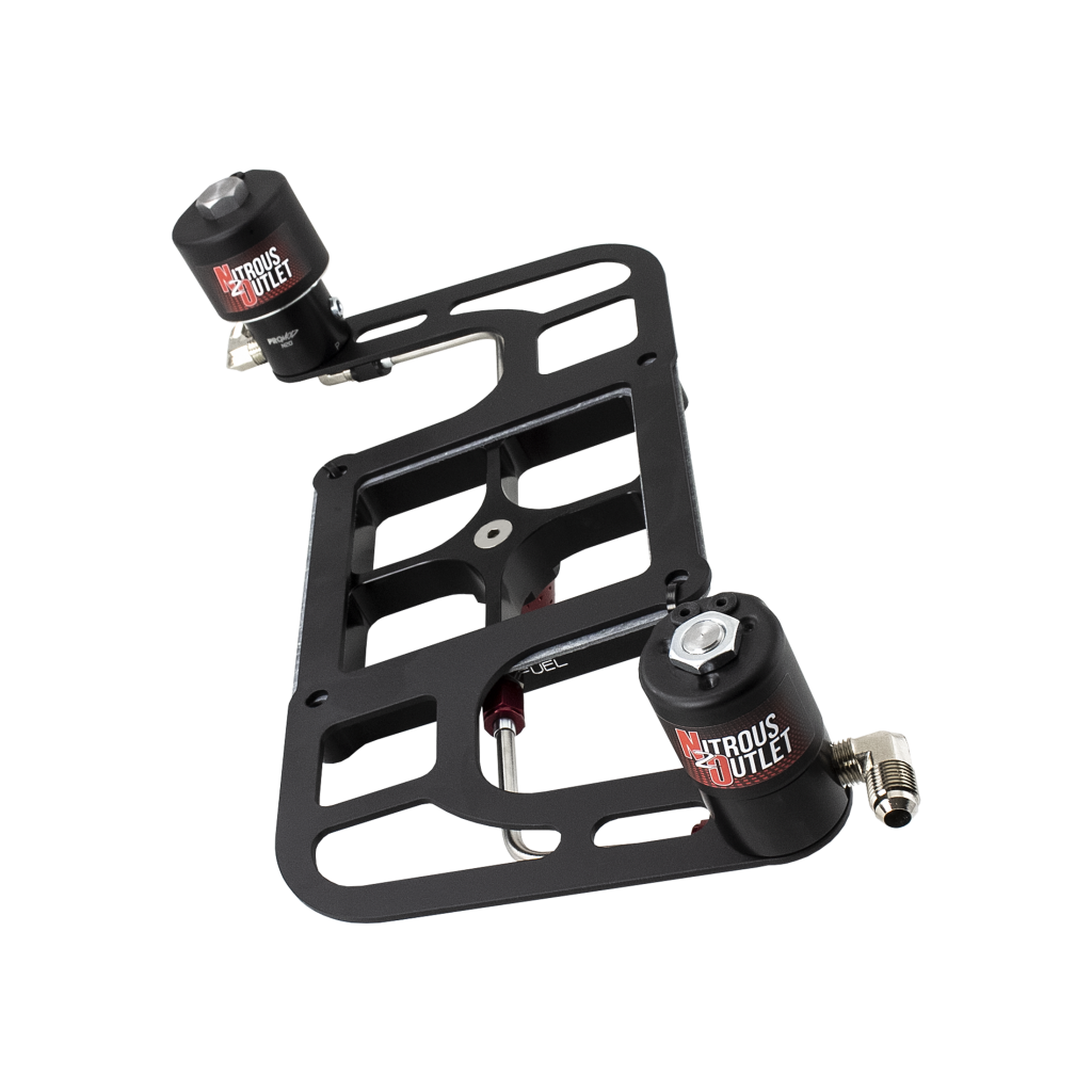 Premium gaskets are included as well as Jetting for 50-100-150-200-250-300-350-400-450-500-550-600 horsepower shots. We even include fuel jetting for gasoline and E85! This is a race system and utilizes a .178 nitrous solenoid and .310 fuel solenoid. Custom pre-bent stainless hardlines are included to connect the solenoids to the plate, as is our popular Boomerang Solenoid Bracket.