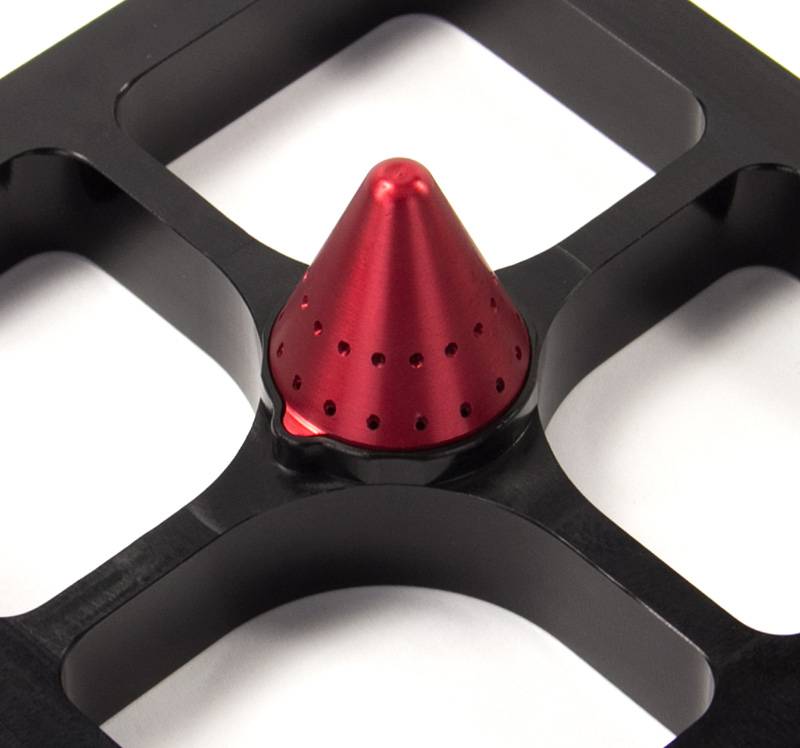 Construction: The 4500 plate and cone are manufactured from 6061 billet aluminum. The nitrous plate is .75 inch thick and black anodized with engraved Nitrous Outlet logos and Fuel/N2O entry marking. The cone is anodized red and features 16 nitrous discharge holes and 16 fuel discharge holes.