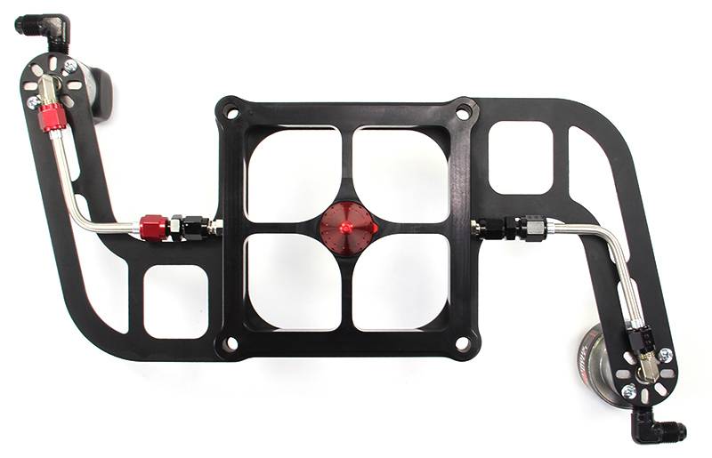 The nitrous will mix into the air stream allowing the engine vacuum to pull it into the cylinder. This is a perfect plate for intake manifolds that do not have a tall deck height from the top of the runner to the carburetor flange.