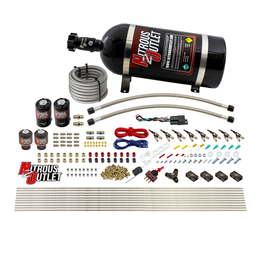 High Horsepower:Â Nitrous Outlet's 8 cylinder direct port systems are designed to be high flowing for high horsepower applications. This system comes with one nozzle per cylinder capable of flowing 200 HP each.