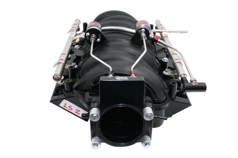 Wet Nitrous Plate. This system includes a billet aluminum plate to fit 90mm LS2 intakes and is capable of flowing up to 400 HP of nitrous. Each billet plate has a black anodized finish with CNC engraved logo and fuel/nitrous labels.