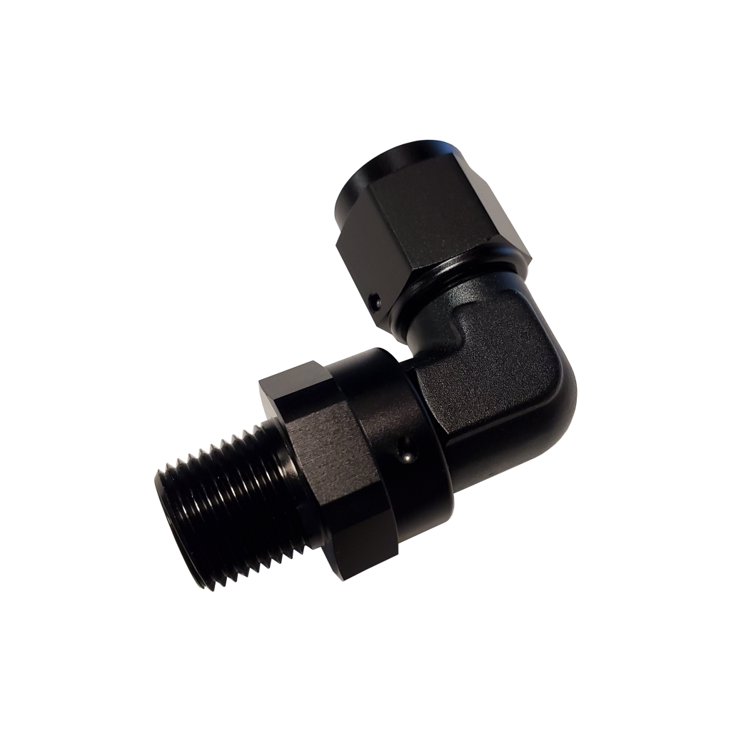 This 1/4 inch NPT x 4AN straight swivel fitting is made from high strength aluminum, and is anodized black to help defend against corrosion, and provide maximum durability.