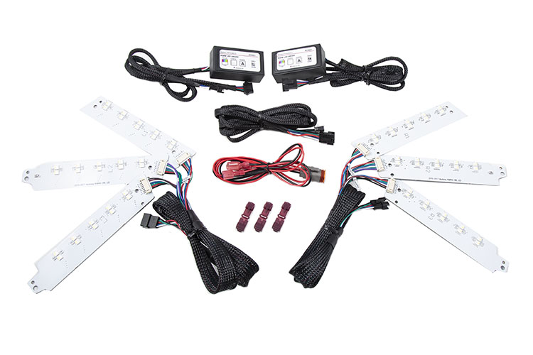 OEM Style, Multicolor Function. The Mustang's factory headlamps are fitted with signature tribar DRLs. By replacing the circuit boards inside with Diode Dynamics LED circuit boards, you can add full multicolor functionality, along with an optional amber sequencing mode, to seriously make your ride stand out! Your order includes two sets of LED boards, one for each side of the vehicle.